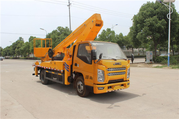 工作高度及半徑因不同車型而定,回轉角度360。,支腿設置橫向(增加支撐跨度)和縱向H型支撐,工作欄上限載200Kg,限兩人作業。