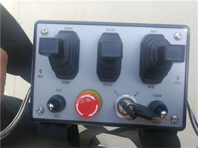 操作系統:通過該控制系統可以實現各功能的轉換。通過操縱多路換向閥的手柄可完成伸縮支腿和工作臂上下旋轉工作。(在操作多路換向閥時應掛上取力器帶動油泵工作),標配無線遙控操作系統。