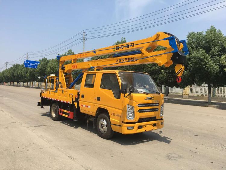江鈴16米高空升降車底盤型號:JX1061TSG25,發動機型號JX493ZLQ5,功率85KW,(115馬力)雙排駕駛室,7.00鋼絲胎,油剎,五檔箱,前橋2噸,后橋3.5噸,帶排氣制動,原廠ABS。整車外形尺寸:7550*1980*3080