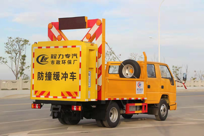 江鈴防撞緩沖車應用場景主要為移動施工、臨時性封閉車道或交通事故處理及搶險現場,可起到預警和防撞緩沖功能。發生碰撞事故后,只需更換緩沖裝置就能繼續使用。
