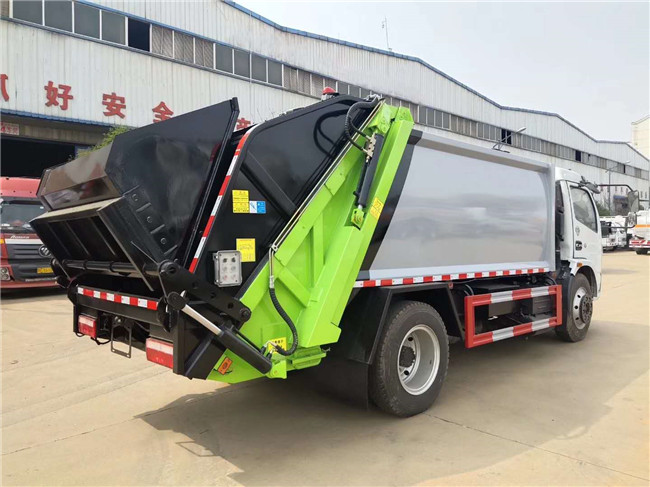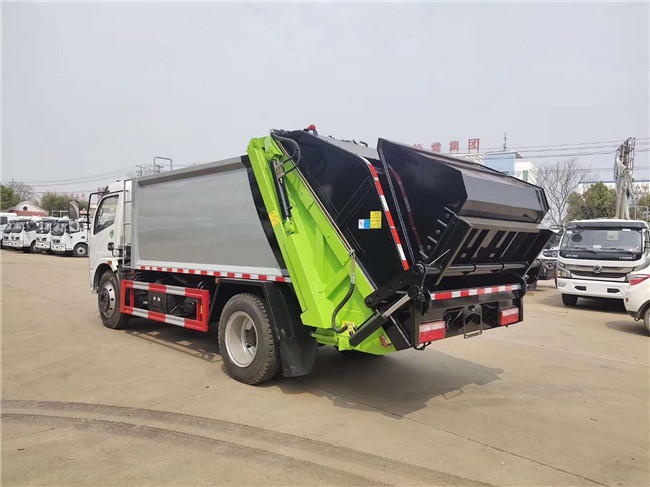 東風福瑞卡國六后裝壓縮式垃圾車,搭配云內150馬力國六發動機,萬里楊六檔箱,245真空輪胎,軸距3800mm,原廠空調,電動玻璃,中控鎖,正規東風股份GB7258-2017新規底盤;上裝采用Q345高強度錳鋼板制作,廂體容積:8立方米,可裝20立方散裝垃圾,合肥快速液壓泵,大流量快速手自一體多路換向閥,可編程PLC電控系統,卸料時帶一鍵循環系統,司機不下車可完工卸料工作。尾部翻轉三角斗機構,(可選裝翻轉桶裝置,可翻120/240L國標方形塑料桶裝置)。選裝氣動密封蓋,選裝遙控器操作。